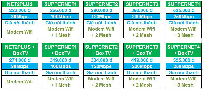 - Miễn phí lắp đặt, trang bị thiết bị: Modem Wifi giá trị cao theo từng gói cước