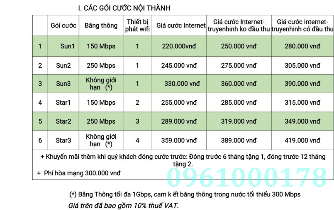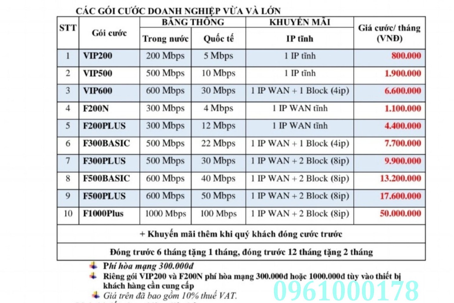 * Báo giá internet dành cho cá nhân hộ gia đình khu vực nội thành