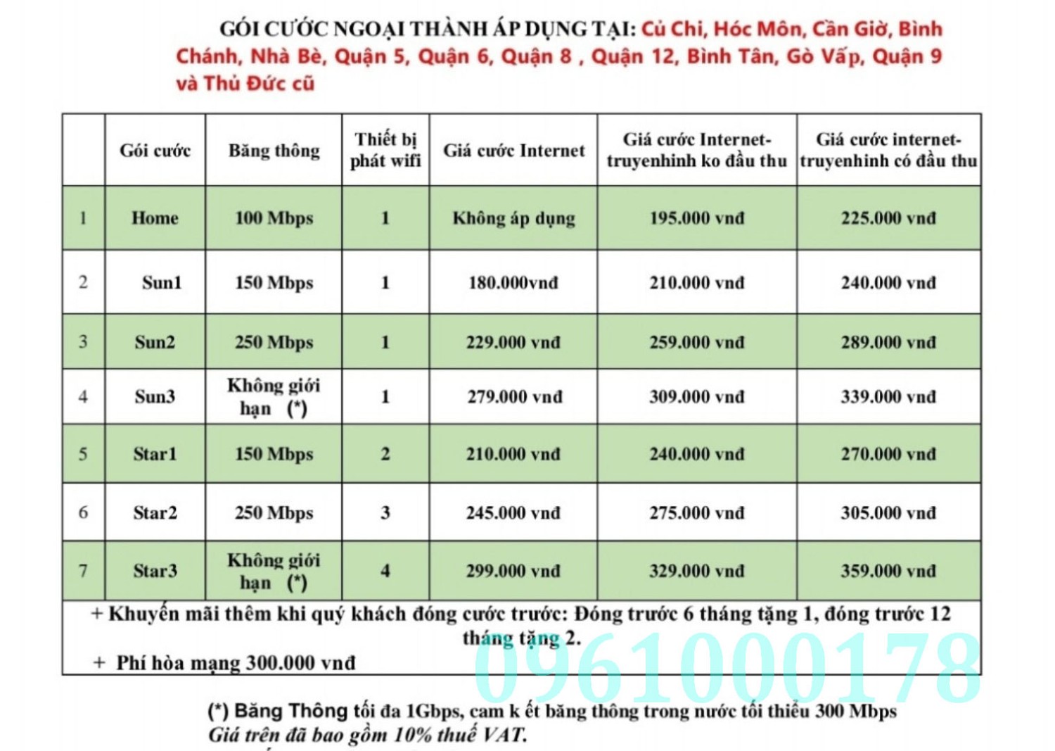 * Báo giá internet dành cho cá nhân hộ gia đình khu vực ngoại thành